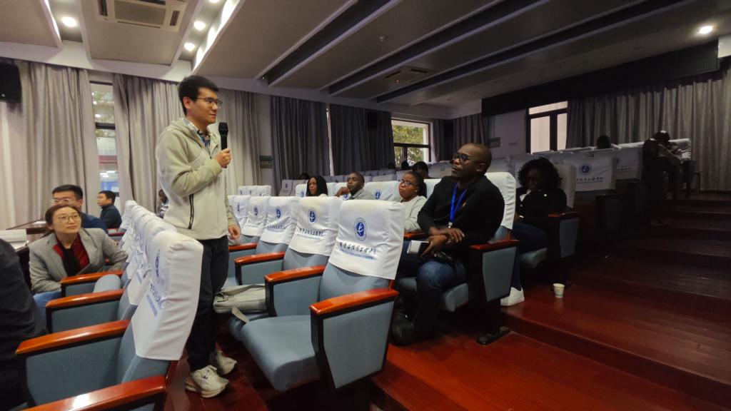合作交流环节成为座谈会的核心亮点。王陆平、王琛、何猛等教师代表先后登台,结合自身研究领域,介绍了在信息系统开发、智能算法应用、数据安全等方向的研究成果,并提出了共建科研平台、联合申报项目等潜在合作路径。在自由交流时段,赞比亚学员围绕专业课程设置适配性、技术成果本地化应用前景、联合科研合作机制及来华留学实操细节等核心议题踊跃提问,与会教师逐一回应、深入交流,现场互动频繁、气氛热烈融洽,充分展现了双方的合作诚意与探索热情。