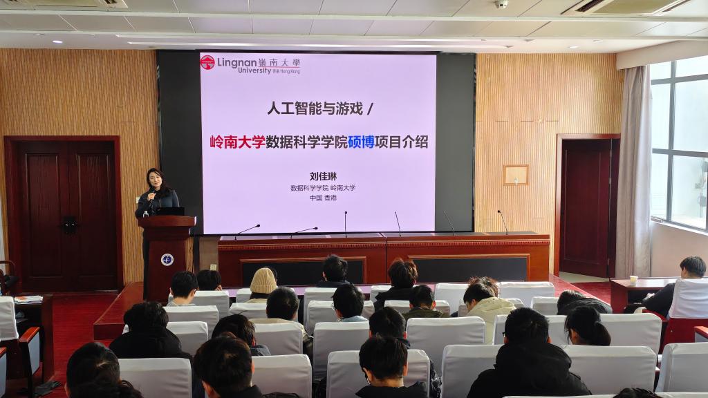 宣讲会上,刘佳琳以“程序化游戏内容生成”为切入点,系统介绍了人工智能在游戏内容自动生成方面的关键作用。随后,她全面介绍了岭南大学及数据科学学院的发展概况、师资力量与学科特色,系统解读了硕博培养体系、申请流程与材料要求。在交流环节,刘佳琳与在场学生就研究方向、学术规划、跨学科申请等话题进行了互动答疑。