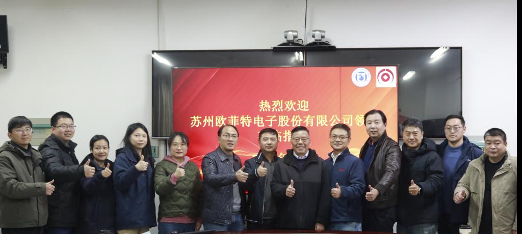 近日,苏州欧菲特电子股份有限公司董事长丁森、技术研发中心高级经理杜新伟等一行来我校开展交流。在电子系(电子与信息工程学院的前身)创始主任仲嘉霖推动下,苏州欧菲特与我校电子学院联合成立“传感器与智能测控系统联合工程实验室”。实验室将围绕芯片共面性检测、A2B测试系统设计等前沿领域开展研究与技术研发。电子与信息工程学院院长胡伏原、副院长吴宏杰等领导,相关教师代表出席此次交流会。
